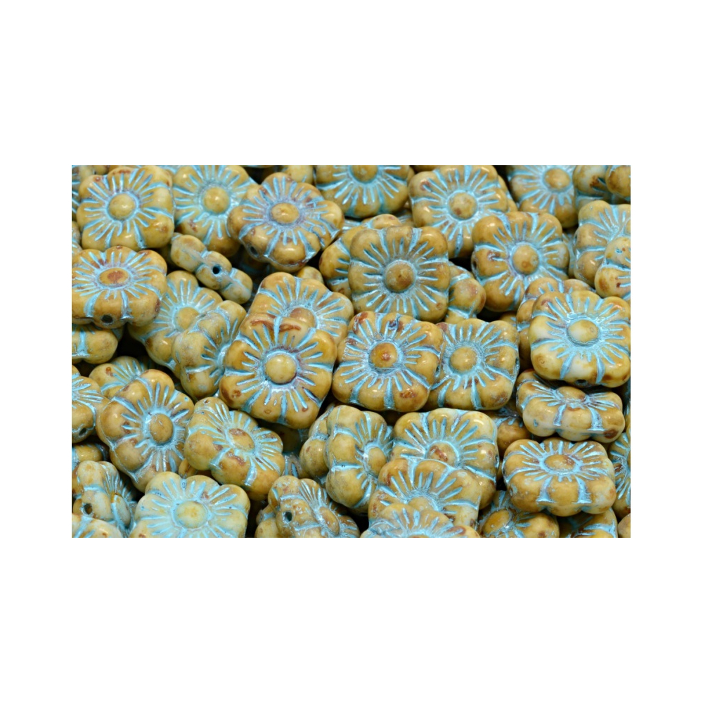Square Flower Beads Skleněné korálky mačkané kytičky Velikost 11x11 mm Cena za 8 ks Barva:...