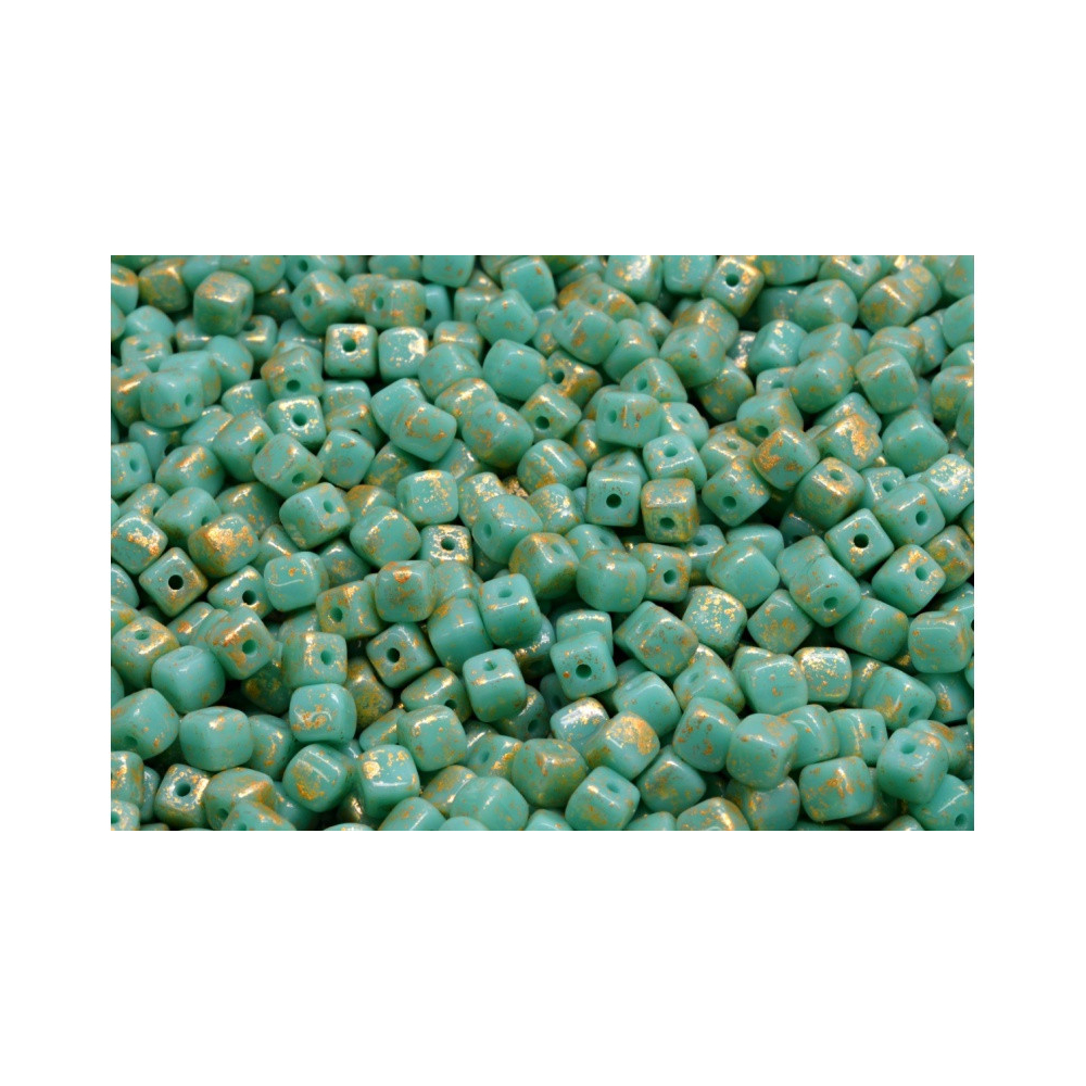 Tyrkysový odstín s nádechem zlatých odlesků přináší do vašich šperků atmosféru letního moře a luxusu. Tyto české skleněné korálky typu Cube Beads 4 x 4 mm pocházejí z rodinné dílny Rutkovský, kde se tradice ručního lisování předává po generace. Díky své neprůhledné tyrkysové barvě a unikátnímu efektu Splash v barvě zlata se stávají nepřehlédnutelným prvkem v jakémkoliv designu.