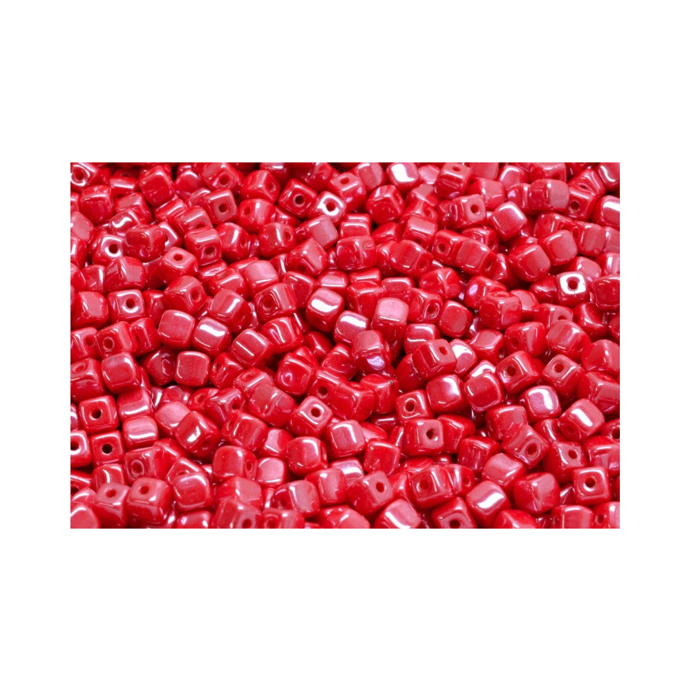 Opaque Coral Red Luster barva propůjčuje těmto skleněným korálkům Cube 4 x 4 mm mimořádnou sytost a vizuální hloubku, která se stane ústředním bodem vašich designů. Ve srovnání s klasickým kulatým rokajlem umožňují tyto ručně mačkané kostky z rodinné huti Rutkovský vytvářet dokonale zarovnané linie a moderní geometrické struktury. Tradiční české sklářství se zde snoubí s precizností, což dělá z těchto korálků ideální volbu pro techniky jako herringbone steh nebo složité tkané náramky, kde je vyžadována tvarová konzistence a pevnost výsledného vzoru.