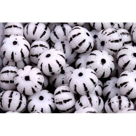 Bílá neprůhledná barva s kontrastní tmavou patinou v rýhách okamžitě upoutá pozornost každé šperkařky hledající originální detaily. Tyto skleněné korálky ve tvaru Pumpkin Beads 8 x 11 mm vynikají svou členitou strukturou, která věrně napodobuje přírodní plody a dodává výsledným šperkům zajímavou hloubku i hmatatelnou texturu.