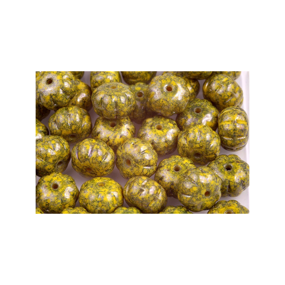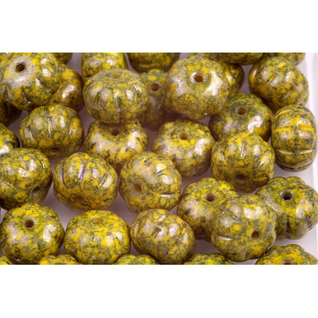Žlutá neprůhledná barva s efektem Picasso v terakotových a zemitých tónech dodává těmto korálkům nezaměnitelný rustikální vzhled. Tyto skleněné korálky ve tvaru Pumpkin Beads o rozměru 8 x 11 mm jsou výsledkem precizní práce rodinné firmy Rutkovský, která v srdci severních Čech udržuje tradiční české sklářství. Každý kus nese stopy ruční výroby, což zaručuje, že vaše šperky budou mít autentický charakter a vizuální hloubku, kterou jinde nenajdete.