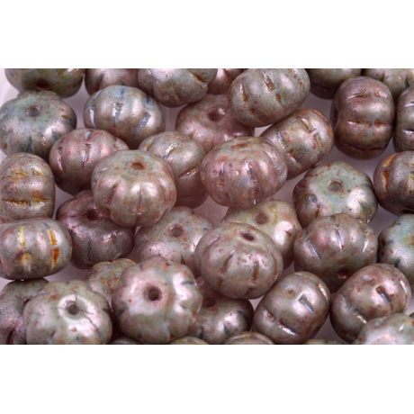 Bílá alabastrová sklovina s autentickým povrchem Picasso Blue tvoří základ těchto jedinečných mačkaných korálků. Ručně mačkané skleněné korálky ve tvaru Pumpkin Beads 8 x 11 mm pocházejí z rodinné dílny Rutkovský a nesou v sobě tradici poctivého českého sklářství. Jejich detailní reliéf, matná patina a organický vzhled jsou ideální pro tvorbu etno šperků, boho náramků nebo tematických podzimních designů.