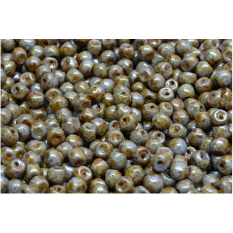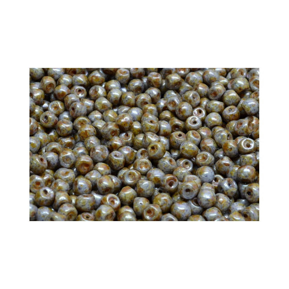 Šedý skleněný základ s povrchovou úpravou pod kódem 02010/65329 vykazuje charakteristický mramorovaný efekt, který kombinuje zemité tóny hnědé a olivově zelené. Tento finiš, v odborných kruzích označovaný jako Picasso, dodává materiálu hloubku a zajišťuje, že žádné dva korálky v balení nejsou identické, což oceníte zejména při tvorbě originálních autorských doplňků.