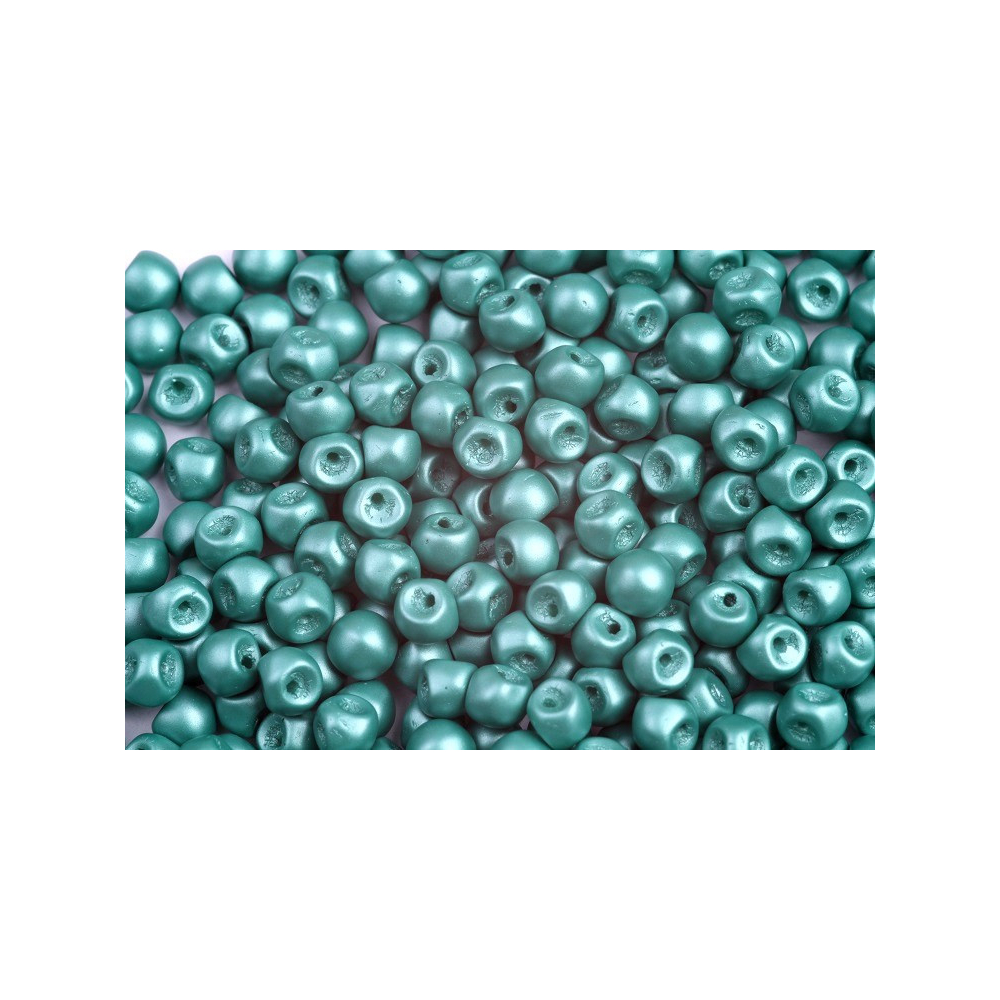Modrozelená barva s jemným pudrovým finišem definuje tyto ručně mačkané Mushroom Button Beads 4 x 3 mm od rodinné firmy Rutkovský. Tyto skleněné korálky ve tvaru houbiček představují vrchol tradičního českého sklářství a díky své drobné velikosti jsou ideální pro detailní šitý šperk i jemné vyšívání. Každý kus nese stopu precizní ruční práce, která zajišťuje originální vzhled každého kreativního projektu a podtrhuje jedinečnost české bižuterie.