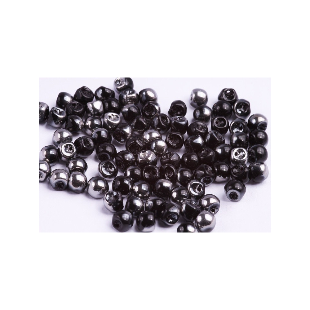 Kombinace temně černé barvy a zrcadlového lesku chrómu se ideálně hodí pro minimalistické geometrické vzory i pro extravagantní večerní bižuterii. Experimentujte s vrstvením těchto ručně mačkaných korálků a objevte možnosti, které nabízí jejich asymetrický polopokov při dopadu světla z různých úhlů. Jedinečný tvar Mushroom dodává hotovému dílu moderní vzhled, aniž by narušil klasickou eleganci tradičního českého designu a sklářského umění.