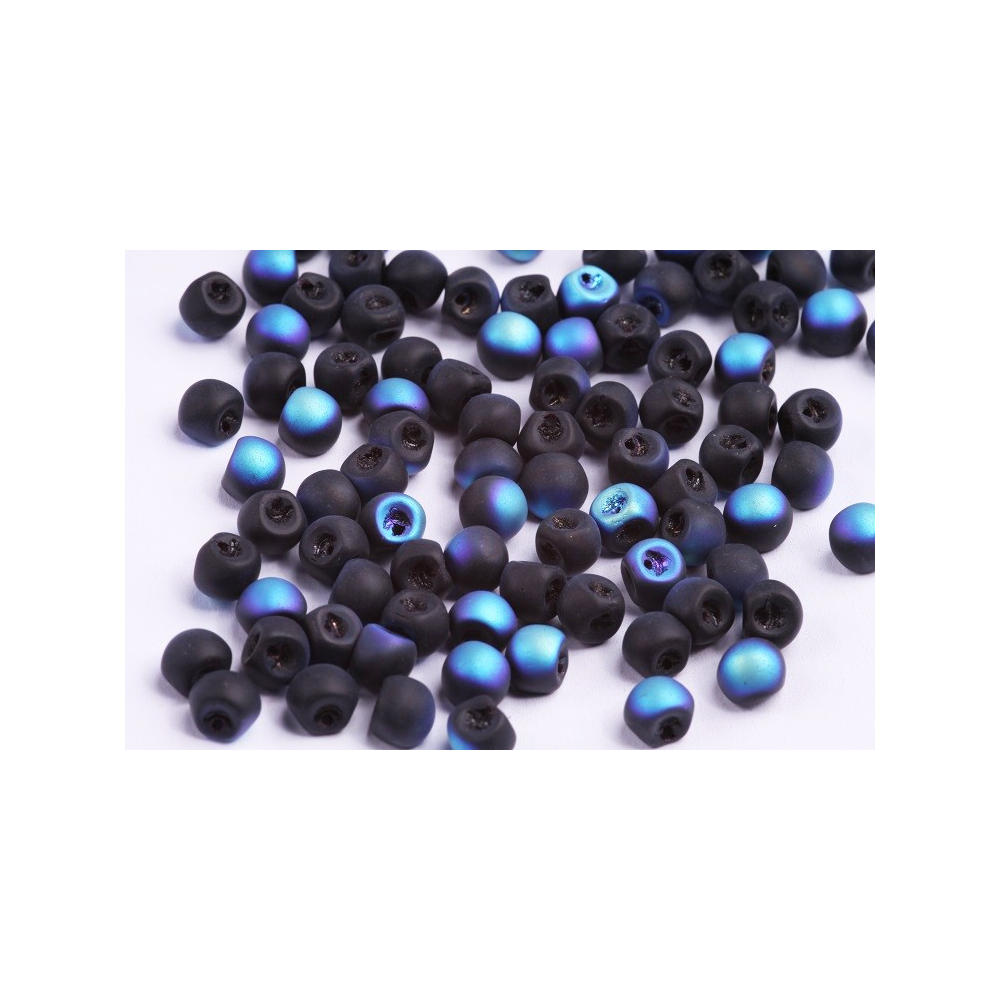 Černá matná barva s výrazným modrým odleskem definuje tyto skleněné korálky Mushroom Button Beads 6 x 5 mm od uznávaného výrobce Rutkovský. Tyto ručně mačkané korálky z tradičního českého skla vynikají precizním provedením a konstantním rozměrem, což je zásadní pro plynulé navlékání a stabilitu v náročných šitých vzorech. Matná povrchová úprava AB dodává každému kusu hloubku a sofistikovaný vzhled, který se mění v závislosti na lomu dopadajícího světla.
