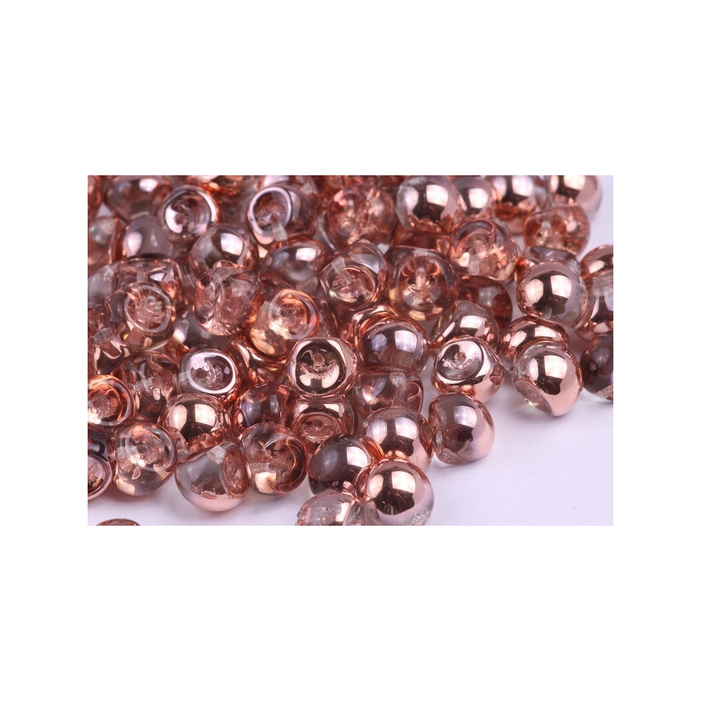 Rose gold odlesky a hřejivý metalický povrch definují tyto precizně zpracované skleněné korálky ve tvaru houbičky. Tato ruční výroba z rodinné dílny Rutkovský navazuje na nejlepší tradice českého sklářství a přináší do vaší tvorby unikátní prvek s vysokým leskem. Tradiční české korálky z Jizerských hor zaručují kvalitu a stálost barev.