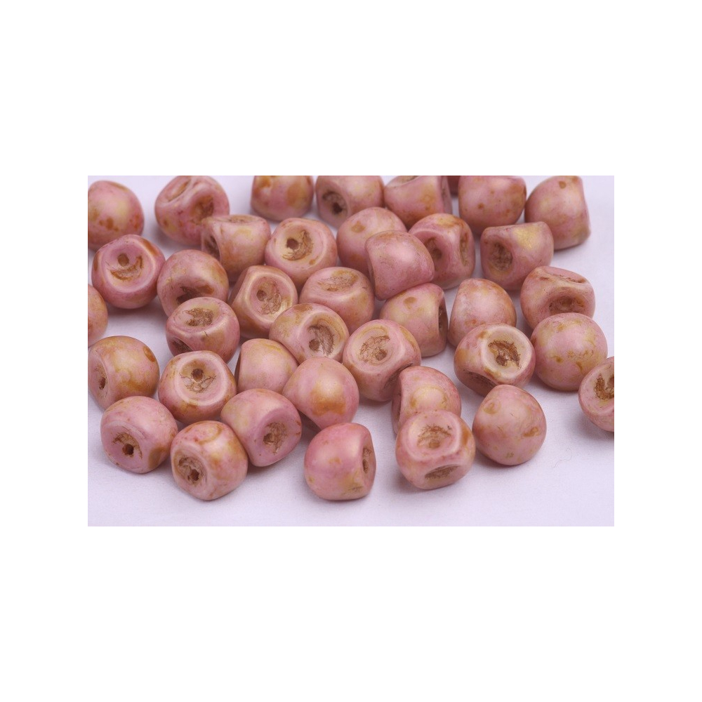 Jemně růžová barva s pískovými podtóny a matným povrchem vnáší do bižuterní tvorby uklidňující přírodní estetiku. Tyto české skleněné korálky typu Mushroom Button Beads vynikají svou specifickou texturou a hloubkou barev, které dosahují díky tradičním postupům barvení ve sklářských pecích přímo v srdci severních Čech.