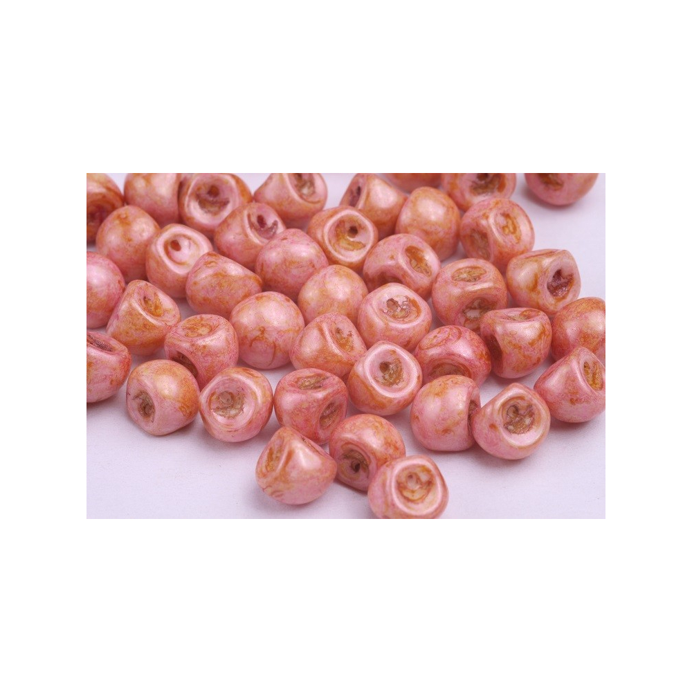 Růžová barva s jemným mramorováním v odstínech broskve promění obyčejný drátkovaný náramek v romantické umělecké dílo evokující kvetoucí zahradu. Tyto Mushroom Button Beads 9 x 8 mm s povrchovou úpravou travertine se skvěle doplňují s rokajlem Preciosa ve velikosti 10/0 v krémových barvách pro dosažení harmonického vintage vzhledu. Skleněné korálky v tomto unikátním tvaru dodají každému šperku hloubku a texturu, která přitahuje pohled na první dotek.
