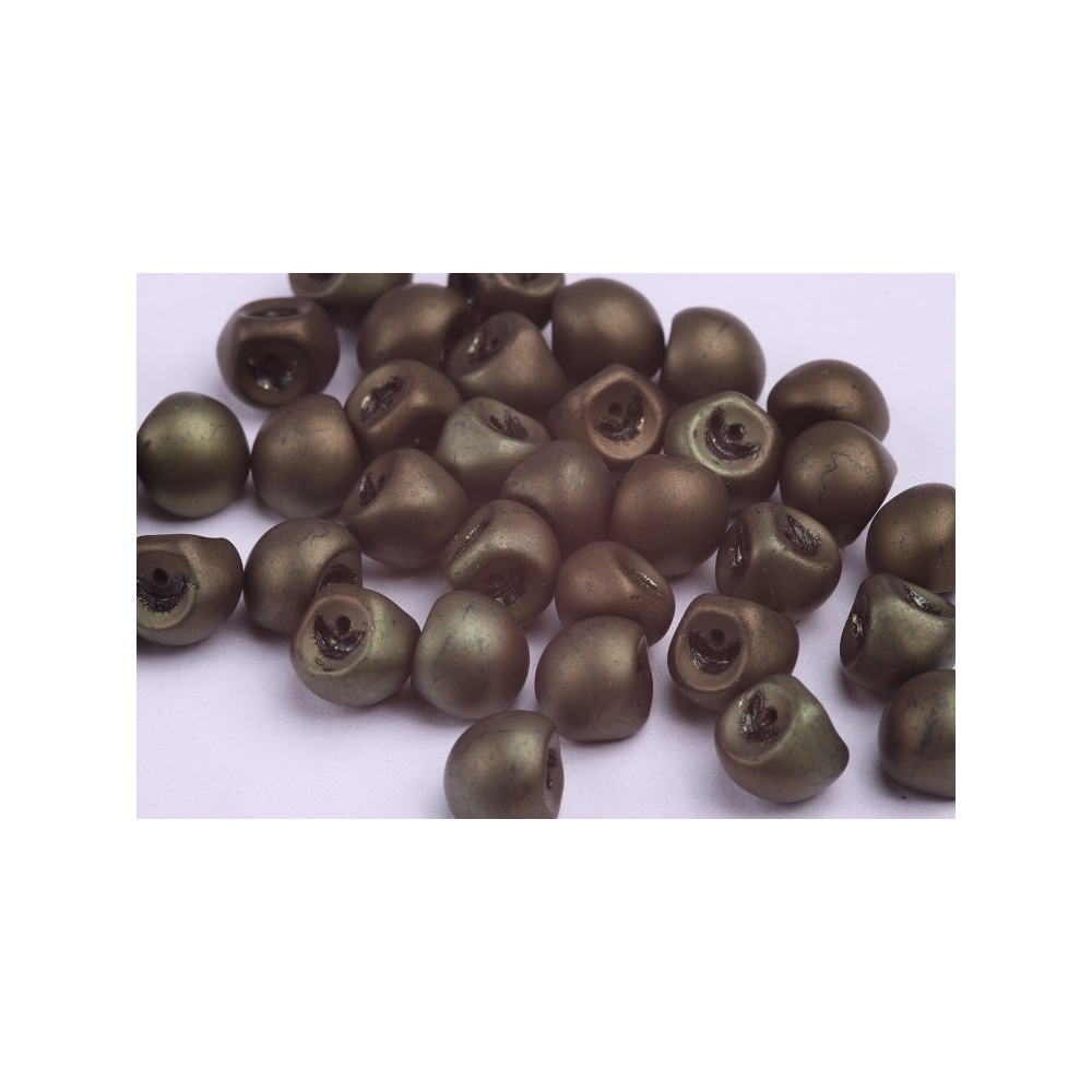 Bronzový nádech s jemným matným finišem definuje tyto skleněné korálky ve tvaru Mushroom Button Beads, které pocházejí z dílny rodinné firmy Rutkovský. Tradiční české sklářství se zde snoubí s precizním řemeslem, kdy je každý kus ručně lisován v srdci severních Čech, čímž získává svou nezaměnitelnou duši a charakter. Tento typ korálků odráží hlubokou historii regionu a přináší do vaší tvorby kousek autentického umění, které se dědí z generace na generaci.