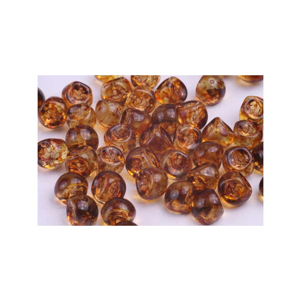 Hnědá barva s efektem Picasso dodává těmto Mushroom Button Beads neuvěřitelnou hloubku a organický vzhled, který připomíná přírodní kameny nebo jantar. Tyto české skleněné korálky od rodinné firmy Rutkovský jsou vyráběny tradiční metodou ručního lisování, což zaručuje, že každý kus je originálem s vlastním charakterem. Skvěle se hodí pro tvorbu boho šperků, kde vynikne jejich hravý tvar houbičky o rozměru 9 x 8 mm, který vnáší do designu prvek přírody a tradice.