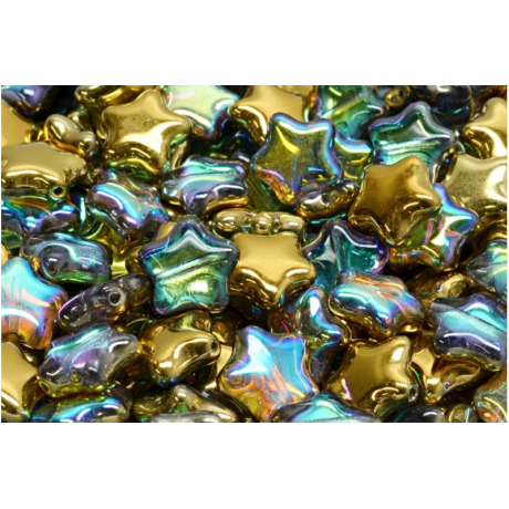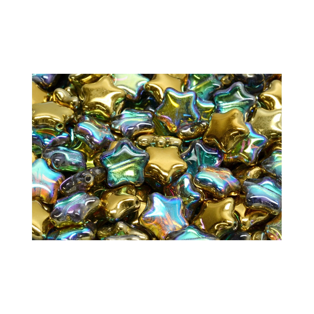 Duhová a zlatá barva s fascinujícími odlesky definuje tento unikátní skleněný korálek ve tvaru hvězdy, který pochází z dílny tradičního rodinného výrobce Rutkovský. Na rozdíl od běžných plastových komponentů nabízí tyto ručně mačkané korálky vysokou odolnost a precizní detaily, které jsou výsledkem generacemi prověřeného českého sklářství a úcty k řemeslu.