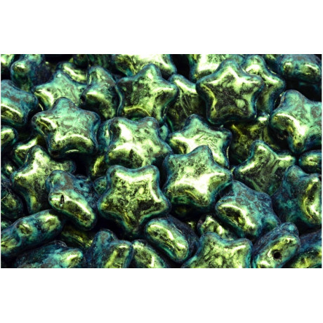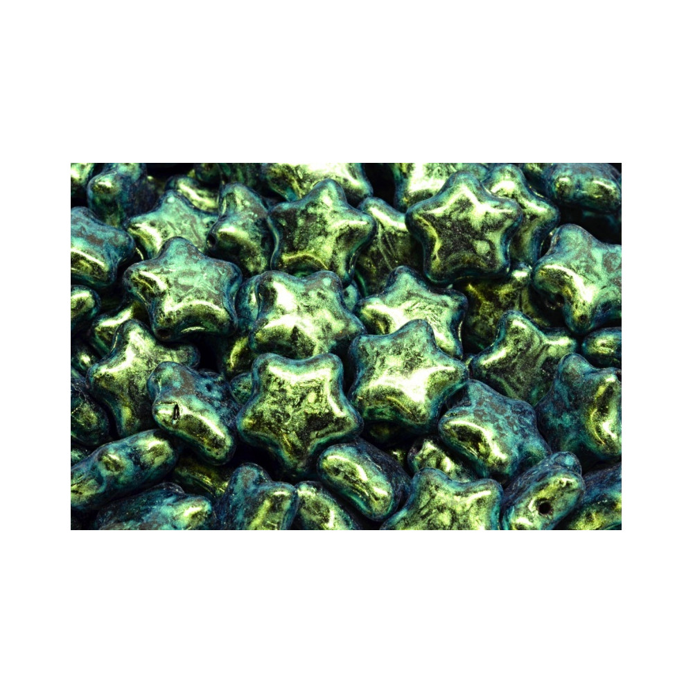 Metalická povrchová úprava s jemným mramorováním dodává materiálu vizuální hloubku a starožitný nádech, který skvěle vynikne v kombinaci s rokajlem Preciosa 10/0 nebo přírodními minerály. Skleněná hmota je barvena přímo v huti, což zajišťuje barevnou stálost a sytost tónu, zatímco finální pokovování vytváří dramatické odlesky při každém pohybu světla. Tyto hvězdičky jsou ideální volbou pro tvorbu šperků s nádechem mystiky, fantasy tématikou nebo motivy noční oblohy.
