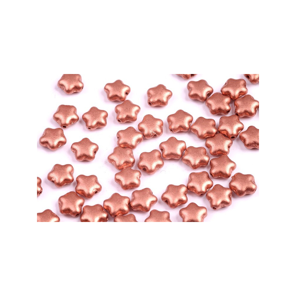 Vintage měděný odstín s jemným kovovým odleskem definuje tyto precizně zpracované Flat Star Beads 6 x 6 mm. Jde o výsledek poctivého řemesla z dílny rodinné firmy Rutkovský, která v srdci severních Čech udržuje tradici ručně mačkaného skla. Tyto skleněné korálky ve tvaru hvězdiček přinášejí do vaší tvorby kousek historie a uměleckého citu, který je pro tradiční české sklářství a region Jizerských hor typický.