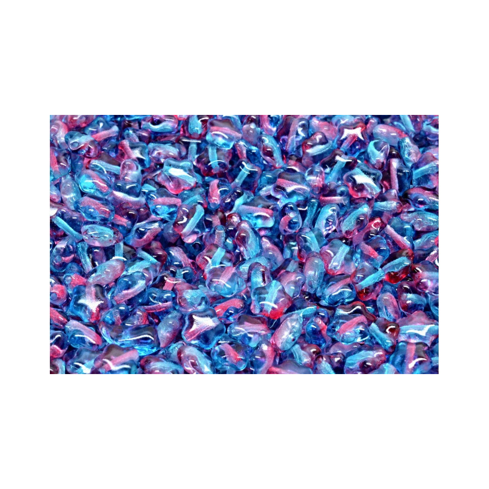 Průhledné sklo s vnitřním barevným efektem vytváří v každém kusu originální hru světla a stínu. Ruční výroba mačkaných korálků zajišťuje, že každá skleněná hvězdička má dokonale hladké hrany a čistý průtah o velikosti 1,0 mm. Díky tomu se s nimi pracuje snadno i při složitějších technikách, jako je víceřadé navlékání nebo kombinování s drobným rokajlem velikosti 8/0 a 10/0.