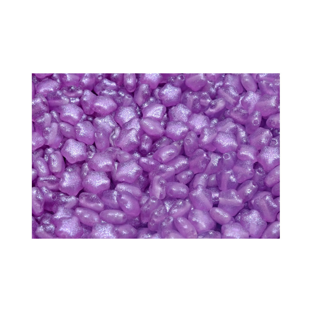 Šeříková fialová barva s jemným perleťovým odleskem zdobí tyto skleněné korálky ve tvaru hvězdičky. Každý kus pochází z dílny rodinné firmy Rutkovský, která udržuje tradiční české sklářství. Ruční výroba v České republice zaručuje vysokou kvalitu a precizní zpracování každého detailu.