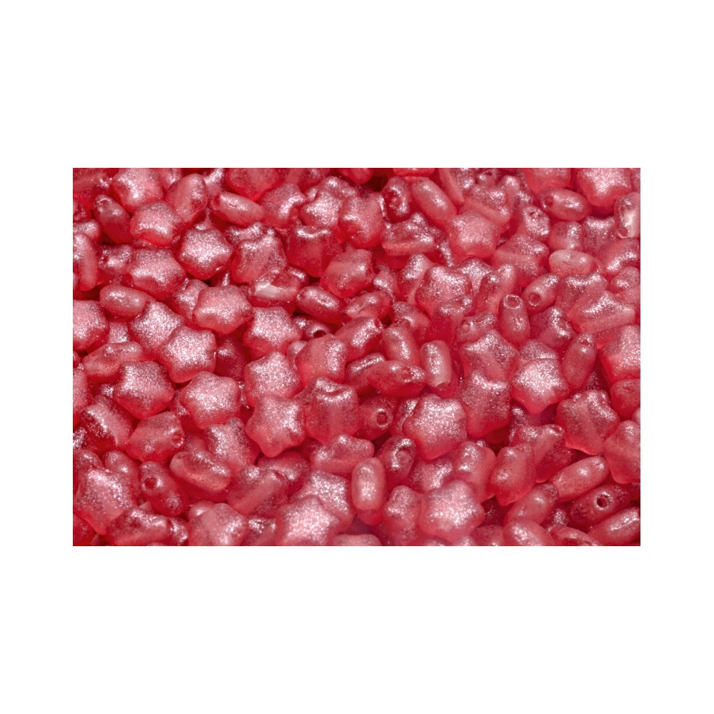 Skleněná hmota s průtahem o velikosti 0,8 mm umožňuje snadnou práci s většinou standardních návlekových materiálů. Tyto růžové korálky hvězdičky v balení po 30 kusech přinášejí do vaší tvorby eleganci a hravost, která čerpá z unikátních forem vyvinutých přímo v České republice tradičním výrobcem.