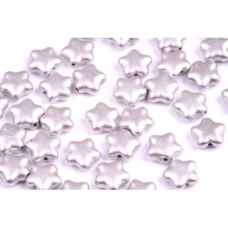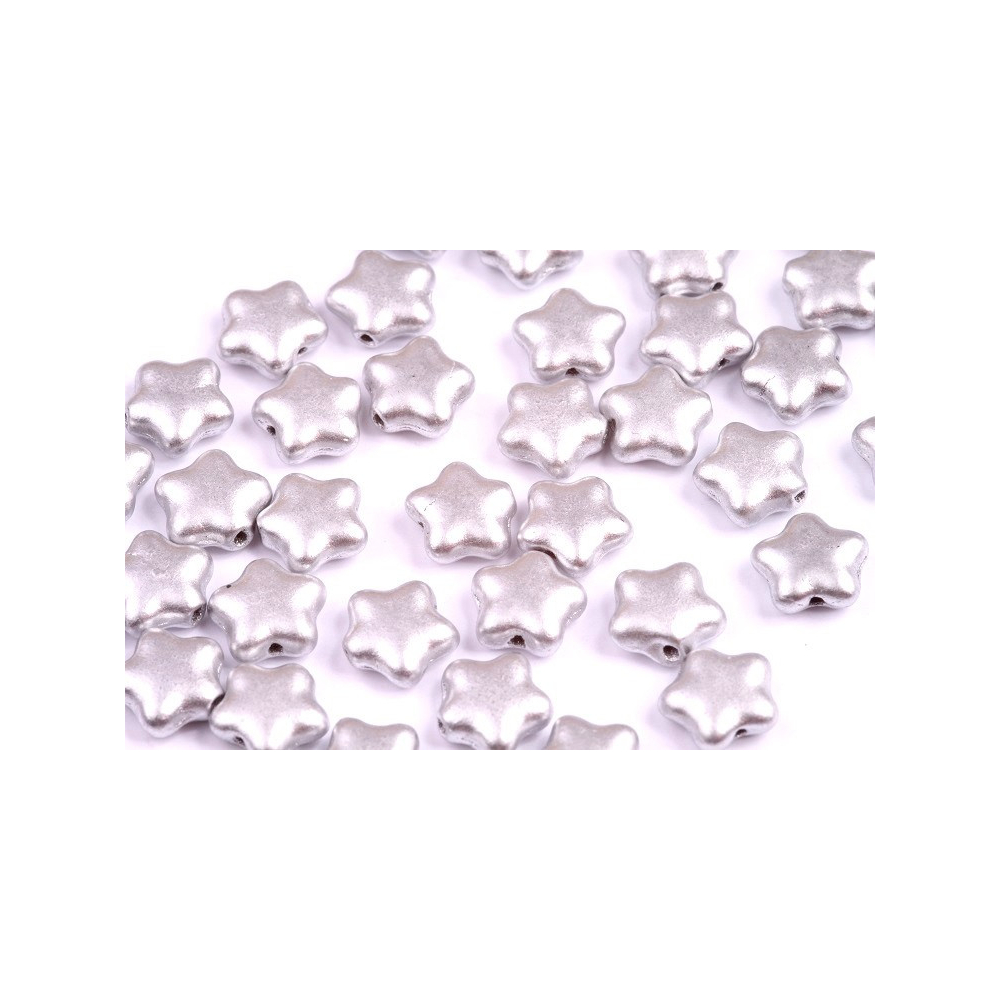 Stříbrný svit noční oblohy se zrcadlí v každé fazetě těchto ručně mačkaných skleněných korálků. Flat Star Beads 8 x 8 mm představují dokonalé spojení precizního řemesla a hravého designu, který vdechne vašim šperkům nádech magického vesmíru. Tyto české skleněné korálky od rodinné firmy Rutkovský vynikají svou jemnou texturou a kovovým odleskem, který okamžitě upoutá pozornost v každém kreativním projektu.