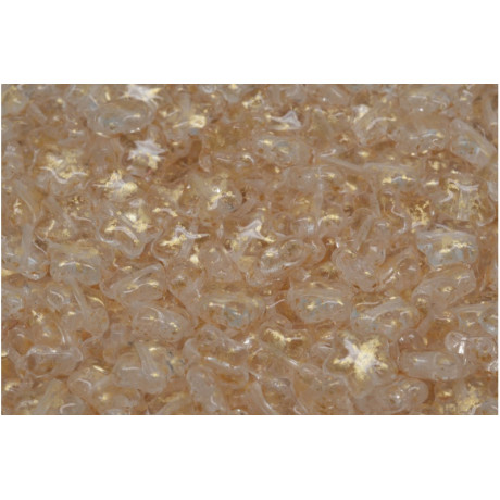 Kombinace průzračného skla a zlatavého dekoru v podobě Flat Star Beads 8 x 8 mm okamžitě upoutá pozornost svou jemnou elegancí. Tyto ručně mačkané korálky od tradičního českého výrobce Rutkovský vynikají precizním zpracováním a jedinečným efektem, který připomíná hvězdný prach v krystalovém základu. Skvěle se hodí jako centrální prvek do náušnic nebo jako hravý detail v náramcích, kde se krásně doplňují s drobným rokajlem Preciosa ve velikostech 10/0 nebo 8/0.