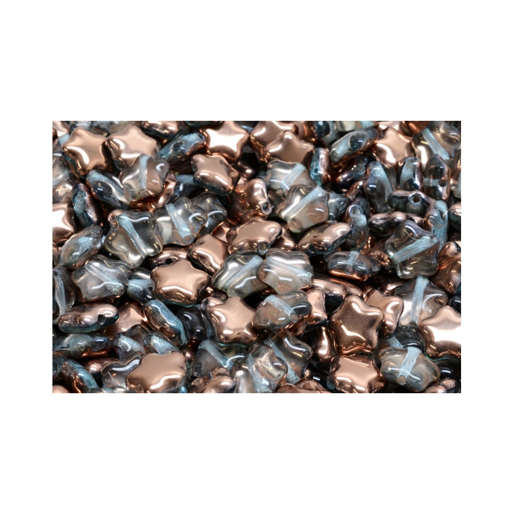 Měděné odlesky v kombinaci s poloprůhledným kouřovým sklem tvoří základ těchto Flat Star Beads, které vznikají v dílnách tradičního výrobce Rutkovský. Každá hvězdička o velikosti 8 x 8 mm je výsledkem precizního českého řemesla a ručního lisování, které dává korálkům jejich charakteristický lesk a hladký povrch. Tato měděná barva s kódem 60000-27101 vyniká svou hloubkou a proměnlivostí světla, což z těchto skleněných korálků dělá ideální prvek pro tvorbu luxusně vzhlížející bižuterie s dlouhou tradicí.