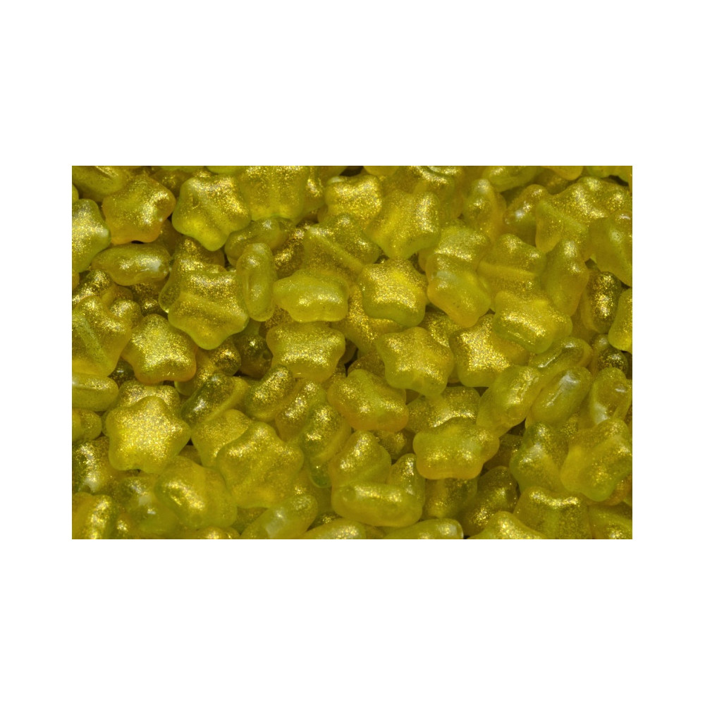 Průsvitné žluté sklo s vnitřním efektem připomínajícím hvězdný prach nabízí nekonečné možnosti pro vaši kreativitu a originální výrobu šperků. Povrchová úprava je hladká a lesklá, což zajišťuje stálý jas a odolnost barvy při běžném používání. Balení obsahuje 20 ks korálků, které pocházejí z České republiky a nesou v sobě odkaz generací sklářských mistrů, kteří dbají na rodinnou tradici a vysokou kvalitu materiálu.