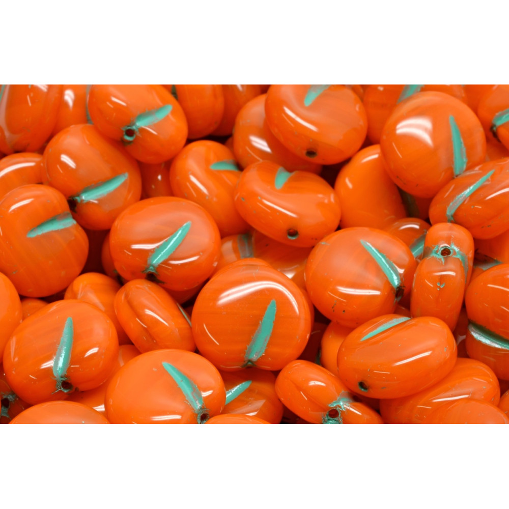 Sytě oranžová barva s tyrkysovým detailem lístku definuje tyto unikátní Apple Beads o rozměru 11 x 12 mm. Tato ruční výroba z dílny rodinné firmy Rutkovský navazuje na nejlepší tradice, které má české sklářství. Každý kus nese stopu precizní práce, díky čemuž jsou tyto skleněné korálky vyhledávaným prvkem pro originální autorskou tvorbu.