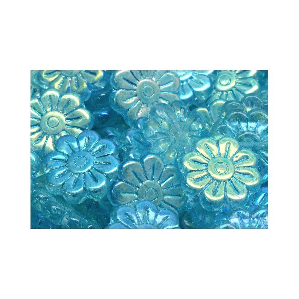 Akvamarínové odlesky s jemným duhovým efektem přímo vybízejí k vytvoření výrazného letního náhrdelníku, kde tyto mačkané skleněné korálky ve tvaru květiny poslouží jako centrální motiv. V kombinaci s jemným rokajlem v metalických odstínech vytvoříte šperk, který zachytí každý sluneční paprsek a dodá vašemu outfitu svěžest a eleganci.