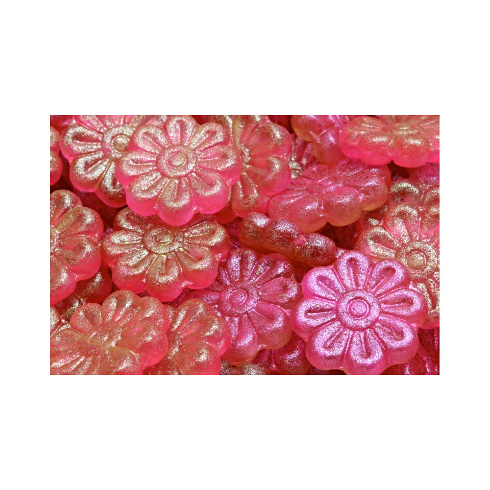 Růžová transparentní sklovina v kombinaci s luxusním zlatým finišem definuje tyto mačkané skleněné korálky ve tvaru květu kopretiny (Daisy Flower Bead). Rozměr 18 x 18 mm předurčuje korálky z dílny renomovaného českého výrobce Rutkovský k roli výrazného centrálního prvku v náhrdelnících nebo jako dominantní součásti náušnic. Precizní lisování detailů okvětních lístků zajišťuje vysokou estetickou hodnotu a věrnost přírodnímu tvaru, přičemž povrchová úprava zvýrazňuje každou linii květu.