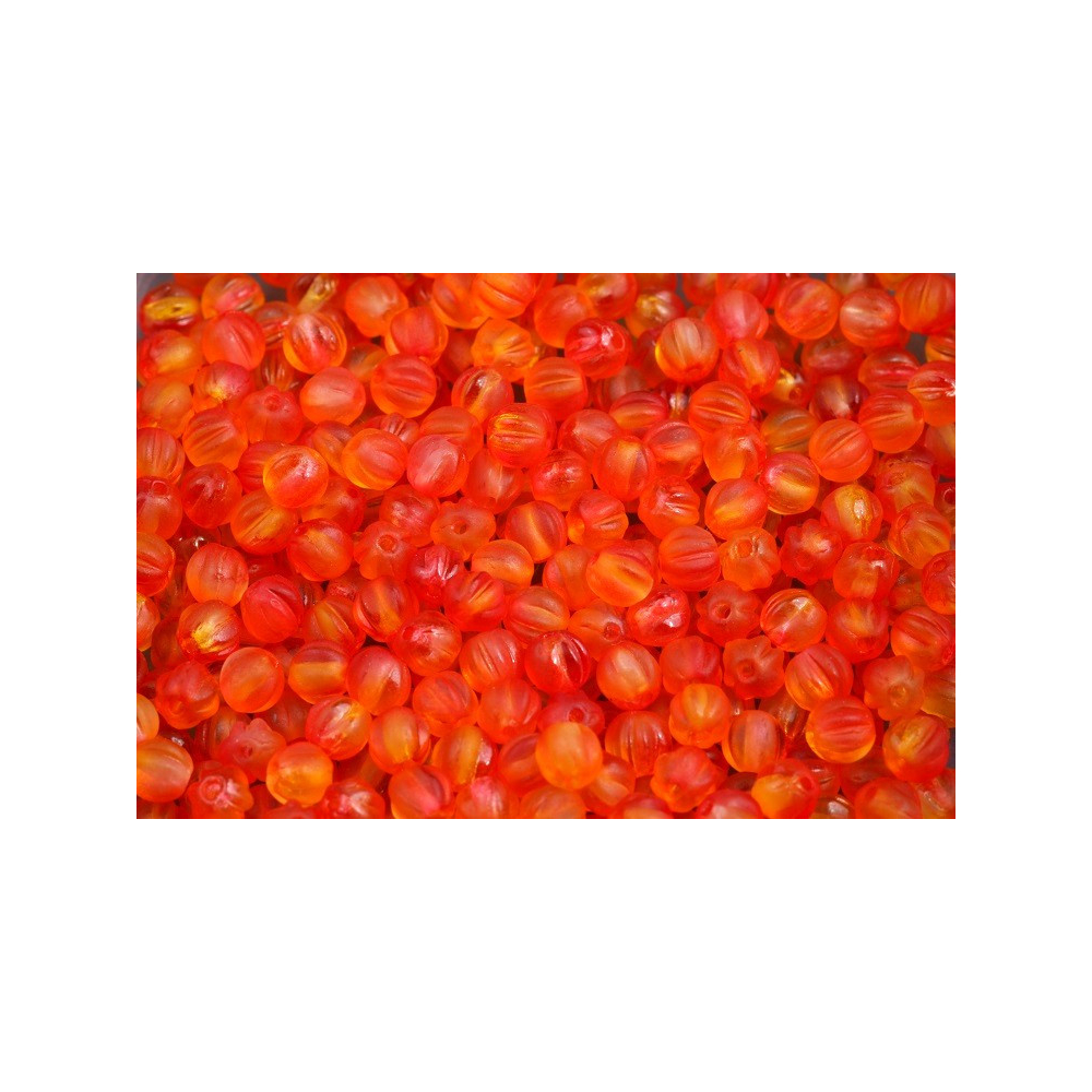 Melon Beads 4 x 4 - skleněné mačkané korálky ve tvaru melounů Crystal Matt Hyacinth Orange Blend