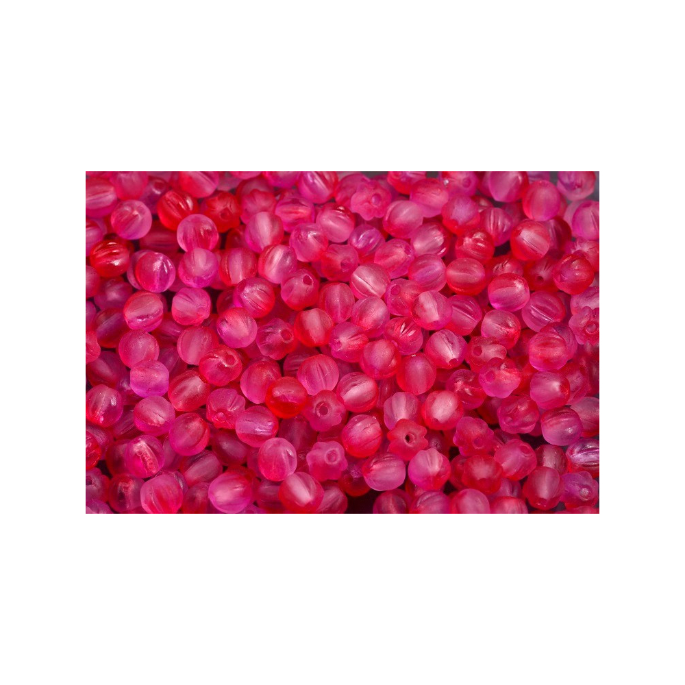 Melon Beads 4 x 4 - skleněné mačkané korálky ve tvaru melounů červená