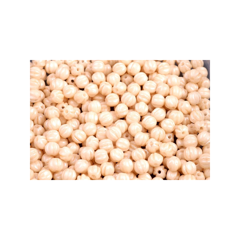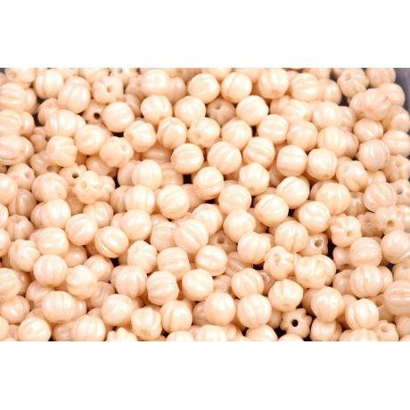 Melon Beads 4 x 4 - skleněné mačkané korálky ve tvaru melounů WHITE ALABASTER LIGHT BEIGE OPAQUE