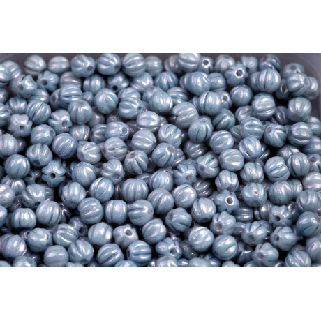 Melon Beads 4 x 4 - skleněné mačkané korálky ve tvaru melounů Alabaster Opal Light Blue Painted...