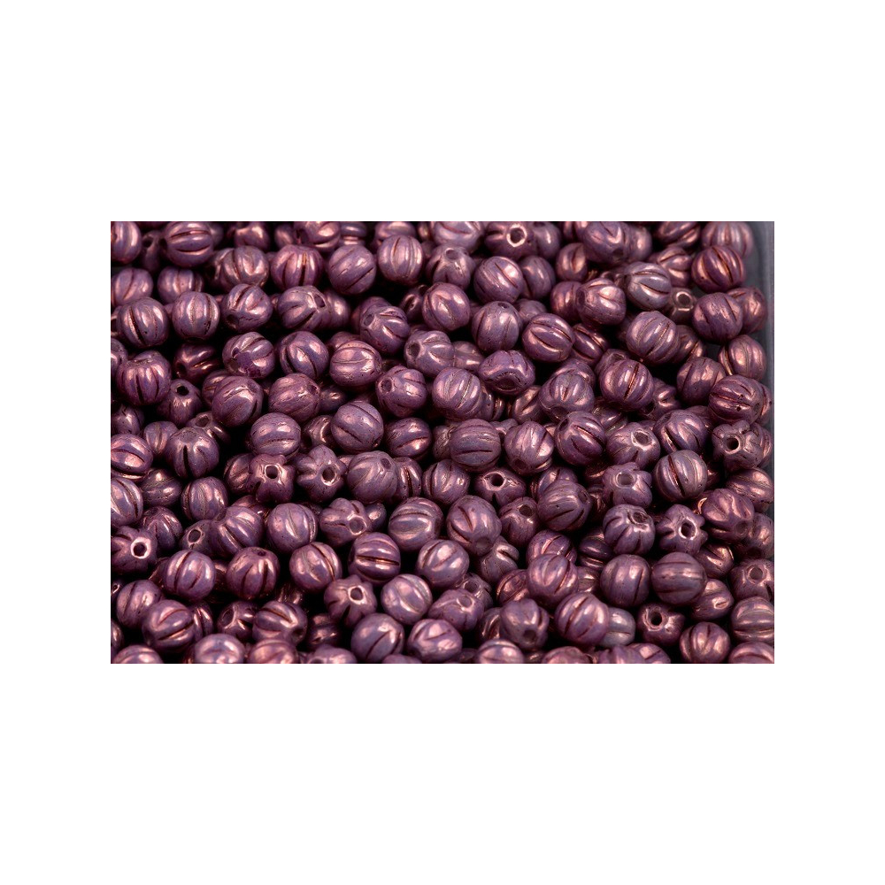 Melon Beads 4 x 4 - skleněné mačkané korálky ve tvaru melounů CRYSTAL VIOLET LUSTER Velikost: 4...