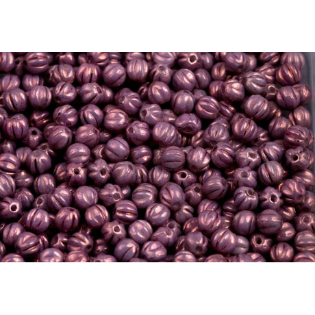 Melon Beads 4 x 4 - skleněné mačkané korálky ve tvaru melounů CRYSTAL MAT /COPPER Velikost: 4 x...