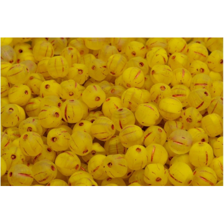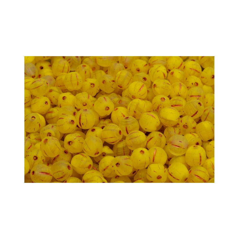Žlutá barva evokující hřejivé paprsky letního slunce dává těmto ručně mačkaným skleněným korálkům neopakovatelný charakter. Melon Beads 6 x 6 mm v sobě spojují geometrickou přesnost a organický vzhled, který připomíná drobné plody se strukturovaným povrchem. Každý kus nese stopy tradičního českého sklářství a vyniká precizně vylisovanými drážkami, které na matném povrchu vytvářejí fascinující hru světla a stínu.