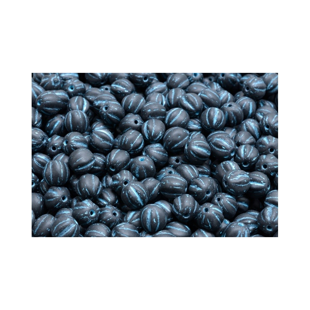 Matná černá v kombinaci s jemným světle modrým patinováním dodává těmto skleněným korálkům neopakovatelný vintage vzhled. Tradiční rodinná firma Rutkovský vyrábí tyto Melon Beads 6 x 6 mm v České republice s důrazem na precizní řemeslné zpracování a zachování poctivého sklářského umění. Každý kus nese stopy ruční výroby, což zaručuje originalitu vašich autorských šperků.