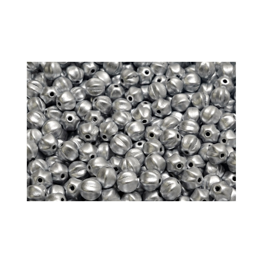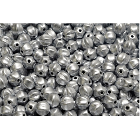 Stříbřitý lesk s jemným saténovým povrchem definuje tyto unikátní skleněné korálky Melon Beads, které v sobě nesou odkaz generací sklářských mistrů z Jizerských hor. Rodinná firma Rutkovský, Česká republika, vyrábí každý kus tradiční metodou mačkání, díky čemuž získávají korálky Meloun svůj charakteristický plastický tvar s podélným rýhováním. Tento nadčasový design je ideální pro tvůrce, kteří hledají spojení historického řemesla a moderní elegance.