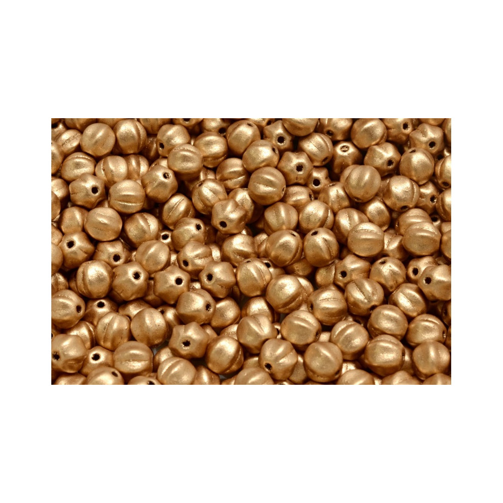 Melon Beads 6 x 6 mm jsou specifické svým tvarem připomínajícím malý meloun s podélnými drážkami, což jim dává vizuální hloubku a zajímavý hmatový detail. Tento tvarový profil se výrazně liší od standardních kuliček a umožňuje korálkářkám vytvářet bohatší a členitější povrchy v náhrdelnících i náušnicích.