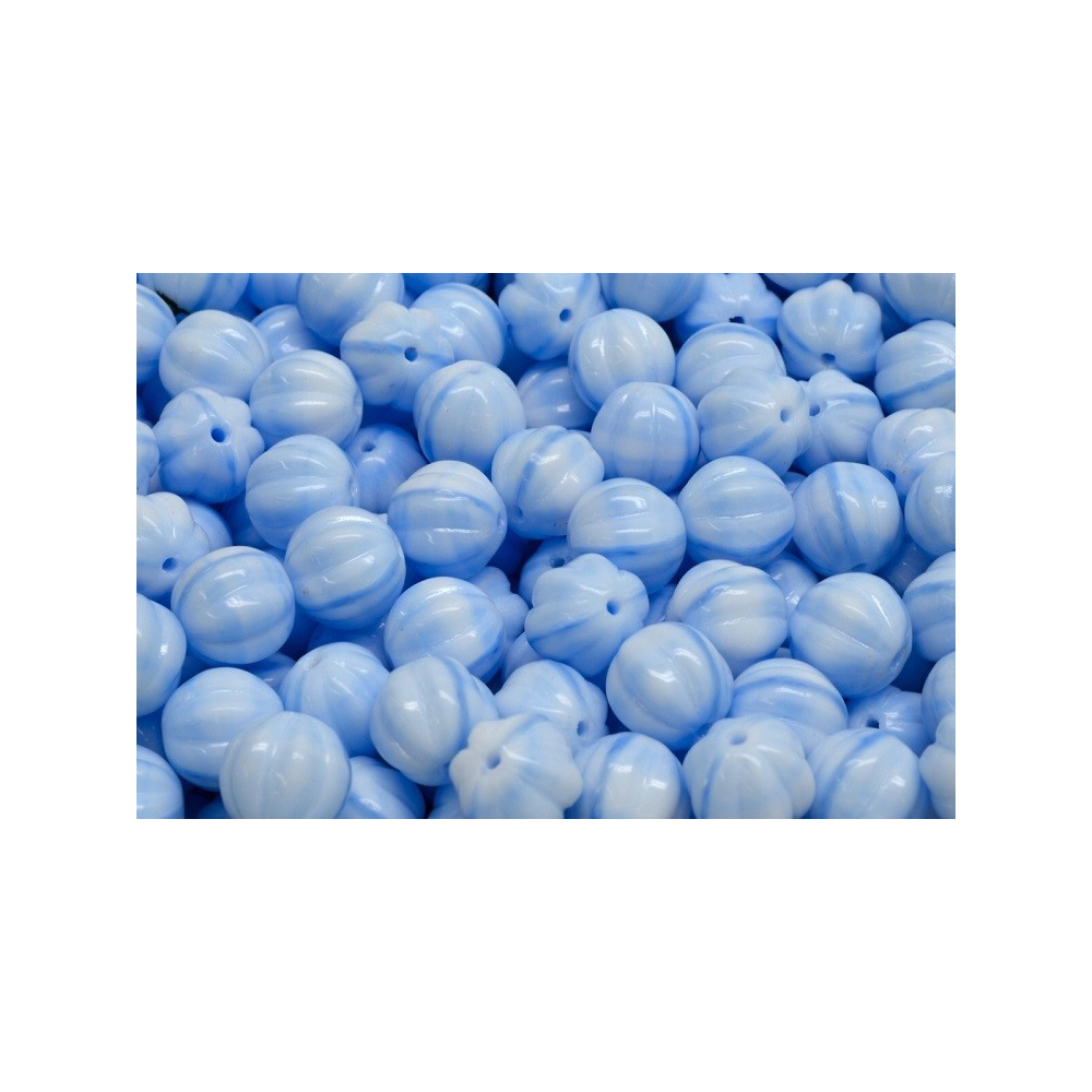 Jemný azurový nádech ranní oblohy se zrcadlí v povrchu těchto tradičních českých korálků, které svým tvarem připomínají drobný plod melounu. Melon Beads 8 x 8 mm představují dokonalou ukázku ruční výroby z dílny rodinné firmy Rutkovský, Česká republika, kde se snoubí generace sklářských zkušeností s precizním detailem. Světle modrá barva s hedvábným efektem Silk Overlay dodává každému kusu unikátní hloubku a jemnou vizuální texturu.
