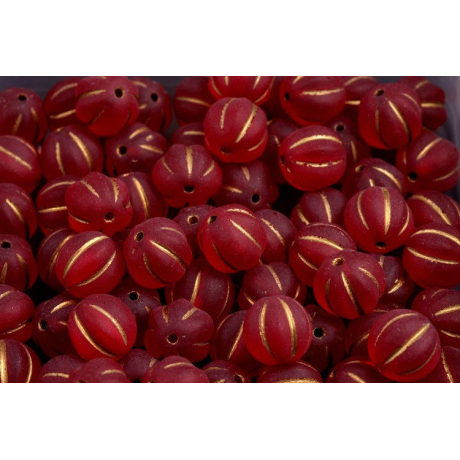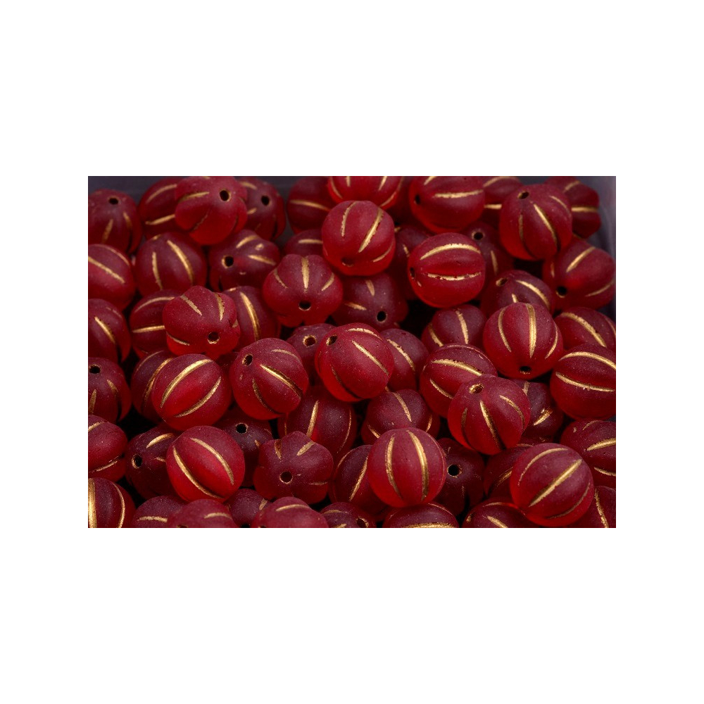 Rubínově červený odstín s jemným matným povrchem a precizním zlatým dekorem v rýhách vytváří z těchto Melon Beads 8 x 8 mm luxusní komponent pro vaše kreativní projekty. Tyto ručně mačkané skleněné korálky od rodinné firmy Rutkovský zosobňují tradiční české sklářství a díky svému unikátnímu tvaru melounu dodají šperkům zajímavou texturu i hloubku. Jsou ideální pro tvorbu elegantních náramků, náhrdelníků v boho stylu nebo jako výrazný prvek v náušnicích, kde vynikne kontrast mezi sytou barvou a kovovým leskem zlata. České sklo v kombinaci s ručním zpracováním zaručuje, že každý kus je originálem vhodným pro ty nejnáročnější šperkařské techniky.