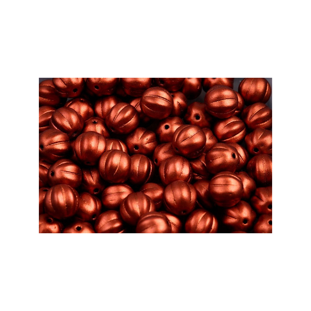 Bronzově červený kovový odlesk těchto korálků vyřeší vaše hledání ideálního komponentu, který dodá šperku hřejivou eleganci a luxusní nádech bez zbytečné křiklavosti. Tyto skleněné korálky ve tvaru Melon Beads 8 x 8 mm pocházejí z dílny rodinného výrobce Rutkovský, Česká republika, kde se dodnes dbá na poctivé tradiční české sklářství a precizní ruční výrobu. Hluboké drážky na povrchu korálku vytvářejí při pohybu fascinující hru světla a stínu, což podtrhuje unikátní odstín bronze fire red nanesený na krystalovém základu.
