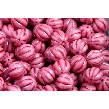 Růžové skleněné Melon Beads 8 x 8 mm vynikají jemným perleťovým leskem a precizním zpracováním z rodinné dílny Rutkovský. Tyto ručně mačkané korálky s tradičním dekorem melounu nesou stopu poctivého českého sklářství a díky tmavšímu stínování v drážkách působí na šperku velmi plasticky.