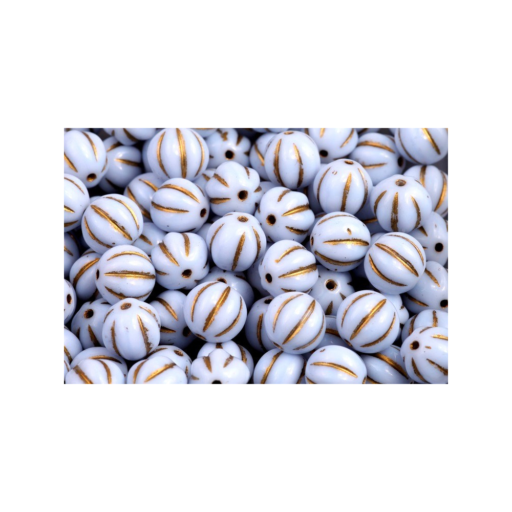 Světle modrá barva v kombinaci s luxusním zlatým zdobením vrypů dělá z Melon Beads 8 x 8 mm naprostý unikát pro vaše kreativní projekty. České skleněné korálky z dílny rodinné firmy Rutkovský v sobě nesou tradici ruční výroby a preciznost, kterou oceníte při tvorbě originálních náramků i náhrdelníků. Co mě na nich nejvíc baví, je jejich jemná textura a způsob, jakým zlatý povrchová úprava v drážkách reaguje na dopadající světlo.
