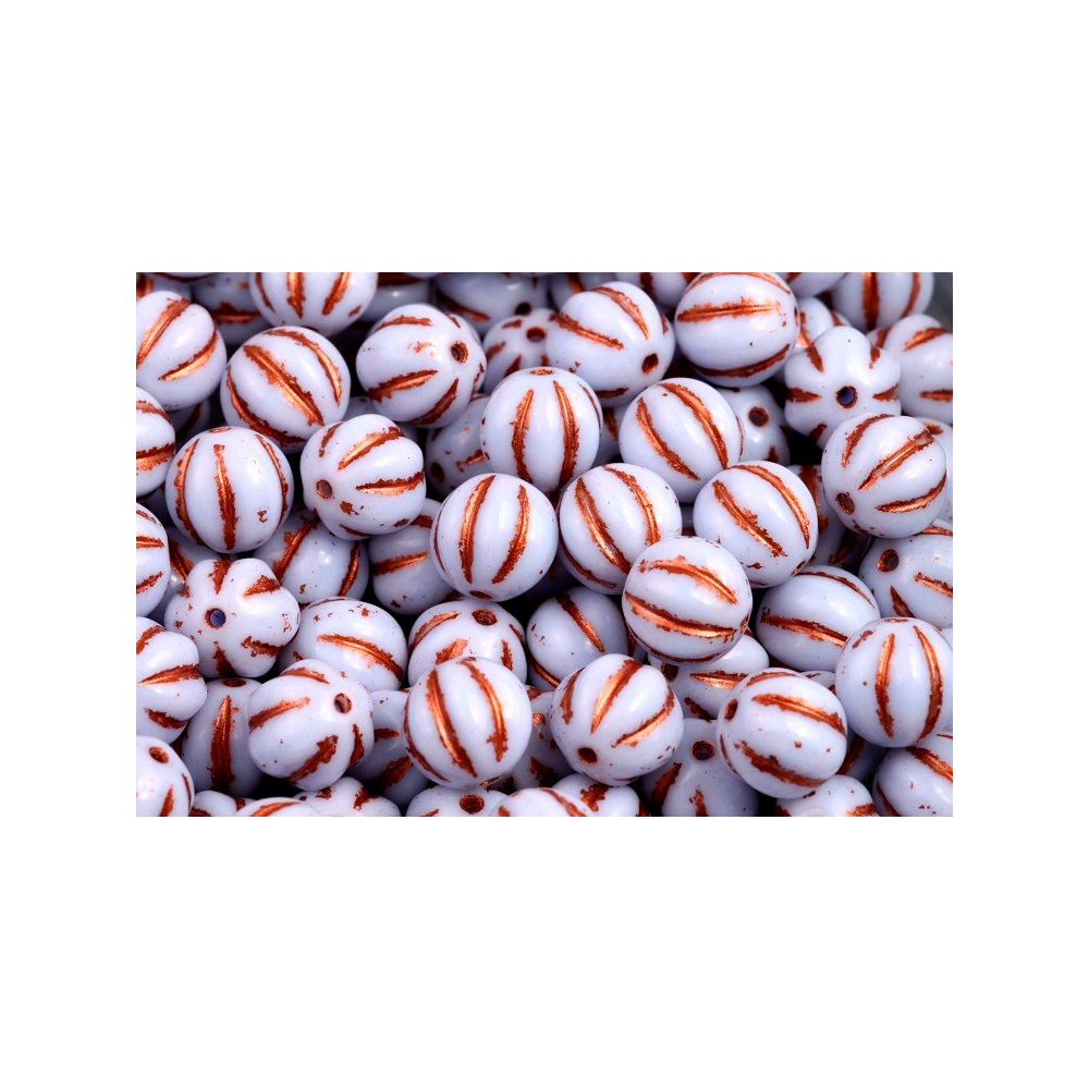 Šeříkový odstín v harmonické kombinaci s hřejivými odlesky měděné barvy definuje tyto ručně mačkané skleněné korálky, které pocházejí z dílny rodinného výrobce Rutkovský, Česká republika. Každý kus v sobě nese odkaz tradičního českého sklářství a řemeslnou zručnost, díky čemuž je každé balení Melon Beads 8 x 8 mm naprostým originálem. Charakteristické drážkování ve tvaru melounu zvýrazňuje hloubku fialové barvy a dodává autorským šperkům texturu, která upoutá pozornost v náhrdelnících i drobnějších doplňcích.