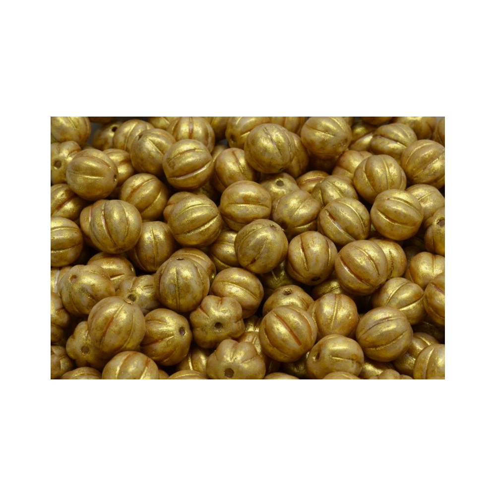 Melon Beads 8X8 Beige Silk Overlay/GOLD Velikost: 8 x 8 mm Velikost průtahu: 0,8 mm Balení: 12...