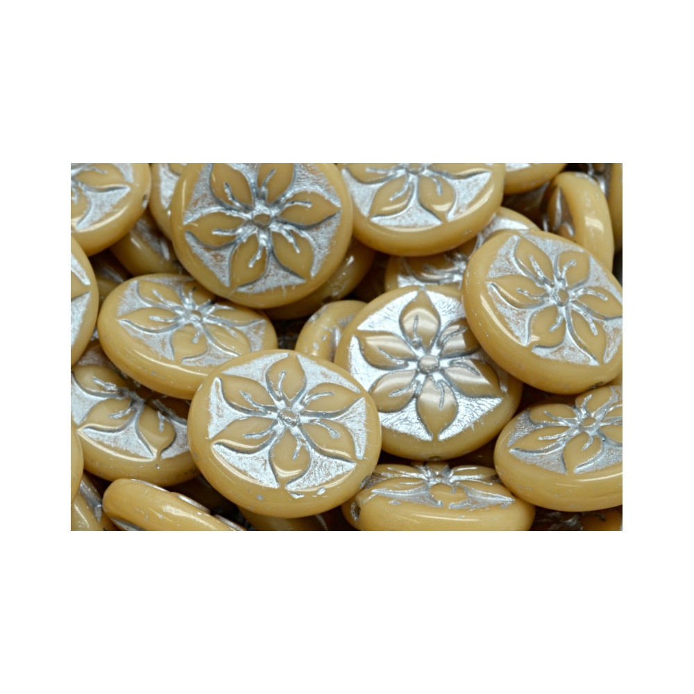 Připravte se na naprostý unikát - nádherné skleněné korálky známé jako "Flower coin beads" od předního českého výrobce Rutkovský. Tyto půvabné skvosty o velikosti 18x8 mm na první pohled uchvátí svým půvabným zdobeným designem.