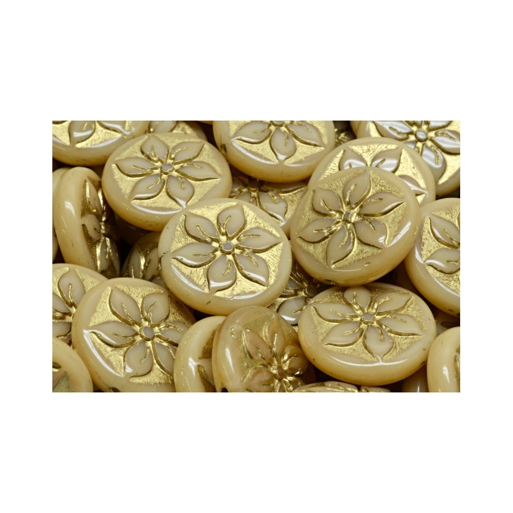 Připravte se na naprostý unikát - nádherné skleněné korálky známé jako "Flower coin beads" od předního českého výrobce Rutkovský. Tyto půvabné skvosty o velikosti 18x8 mm na první pohled uchvátí svým půvabným zdobeným designem.