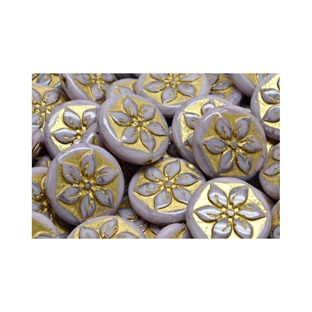Připravte se na naprostý unikát - nádherné skleněné korálky známé jako "Flower coin beads" od předního českého výrobce Rutkovský. Tyto půvabné skvosty o velikosti 18x8 mm na první pohled uchvátí svým půvabným zdobeným designem.
