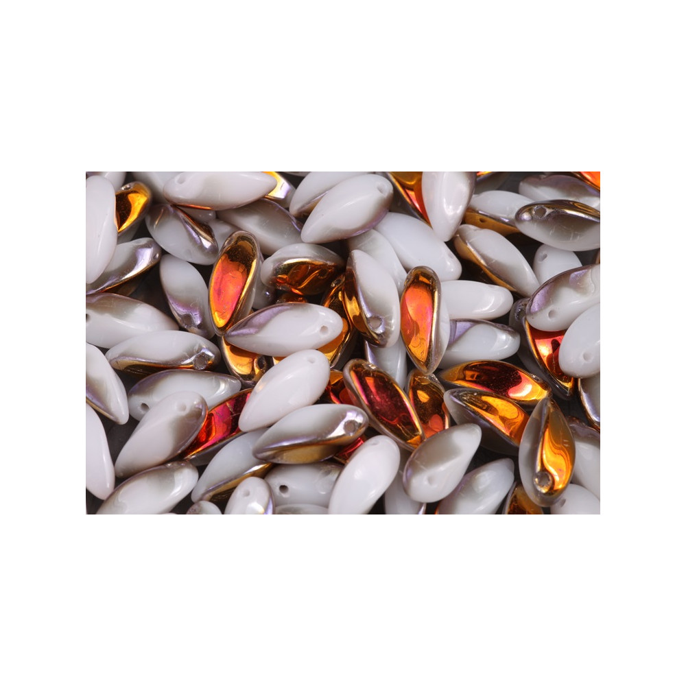 Mačkané skleněné korálky vyrobené v České republice. Twisty svým tvarem mohou připomínat jazýčky s dírkou v horní části, jsou však zakroucené.