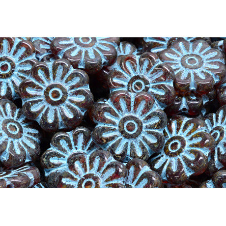 Hnědá barva se sytou tyrkysovou patinou propůjčuje těmto 18 x 18 mm kytičkám nezaměnitelný vintage charakter, který je v současném šperkařství velmi žádaný. Tyto mačkané skleněné korálky z dílny Rutkovsky v sobě spojují tradici českého skla s moderním boho stylem. Vyniknou zejména v kombinaci s přírodními motivy, jako jsou skleněné lístečky, se kterými vytvoříte harmonické náhrdelníky nebo bohaté náramky inspirované rozkvetlou loukou.